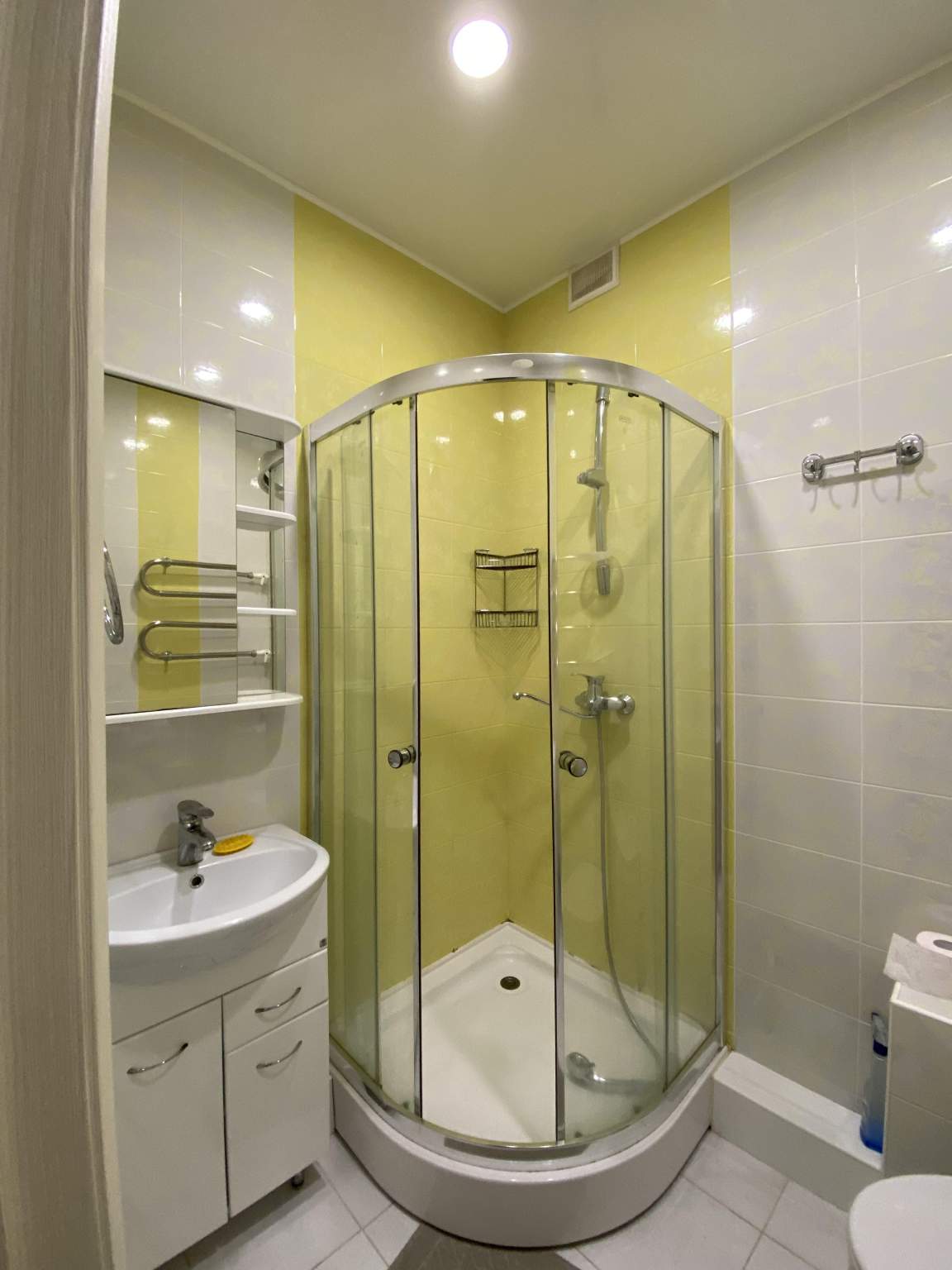 Жилая площадь 17.3 м2, кухня 12.2 кв.м, внутри евро ремонт. Квартира с мебелью, есть бытовая техника: стиральная машина, холодильник, телевизор, кондиционер, посудомоечная машина, встроенная техника. Раздельных санузлов - нет, совмещенных санузлов - 1.