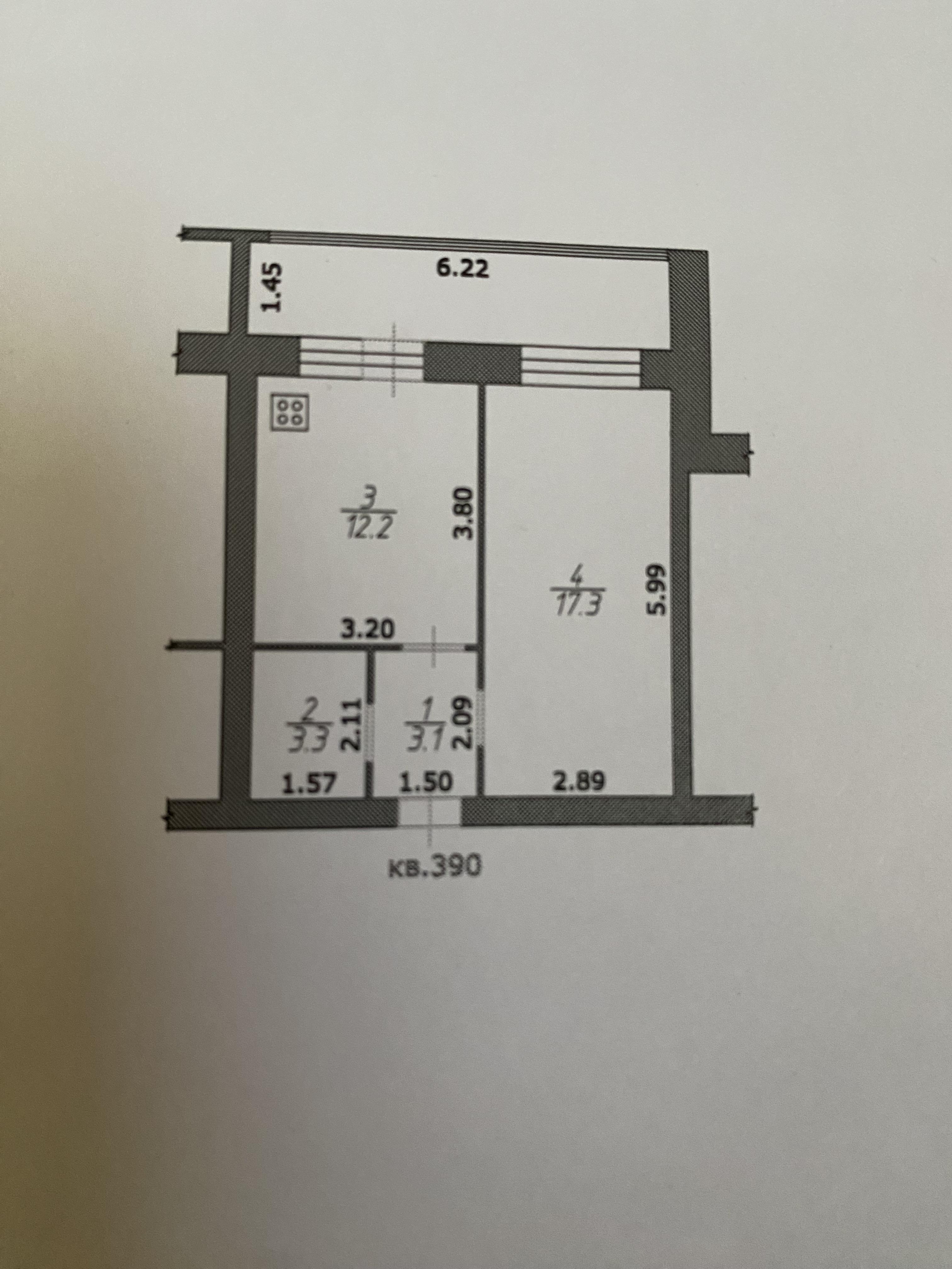 Площадь квартиры увеличена за счет объединения с утепленной лоджией.